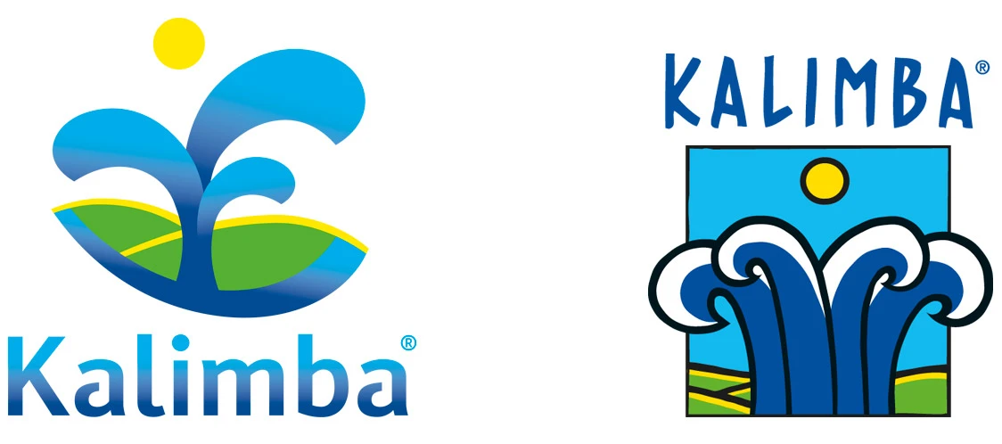 Links zie je het nieuwe logo dat Stoere Binken Design voor Kalimba ontworpen heeft. Rechts het 15 jaar oude logo, duidelijk toe aan een opfrissing.