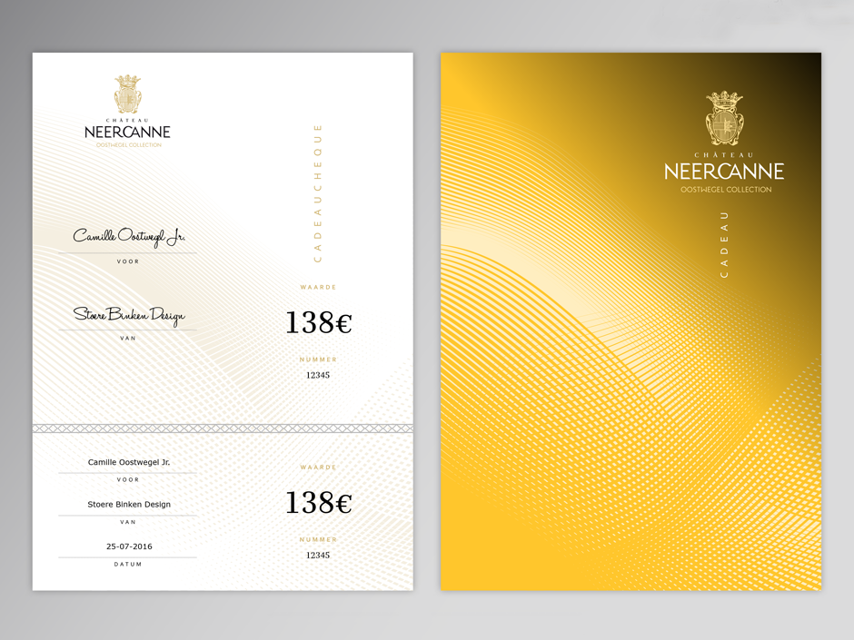 De naam Oostwegel Collection is niet alleen in de regio Limburg, maar ook internationaal een begrip. Zij wordt geassocieerd met kwaliteit, vakmanschap en historie. Branding bureau Stoere Binken Design heeft deelgenomen aan de pitch voor het herontwerp van de cadeaucheque, met kans op de rest van de huisstijl. Ook al hebben we de pitch niet gewonnen, we zijn wel zeer trots op ons ontwerp.